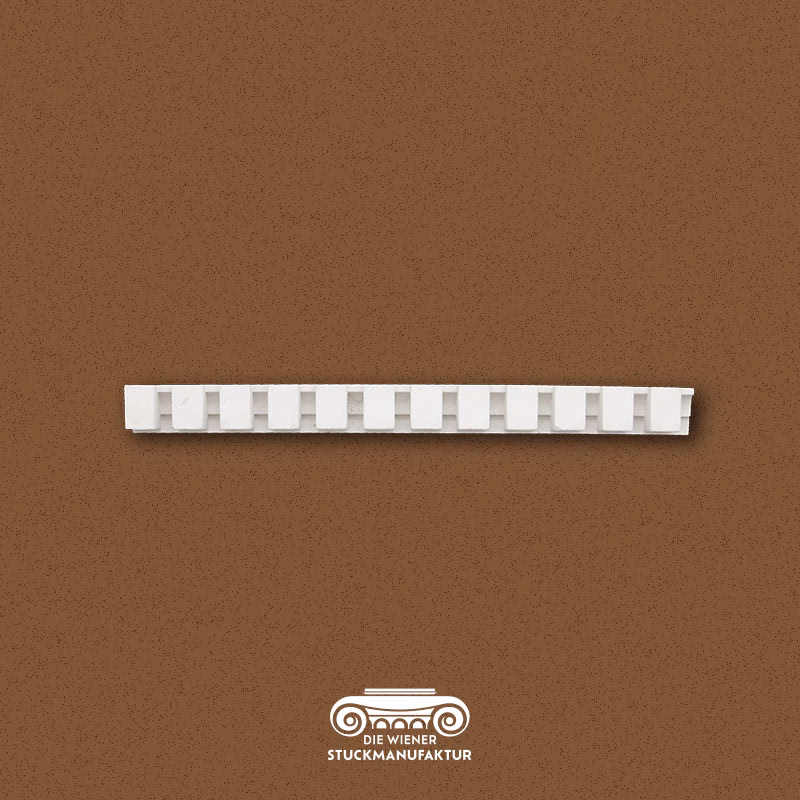 Stuck Zahnschnitt 45/500/59mm aus Gips, dieses Stuck Dekorelement ist auch in weiteren ähnlichen Ausführungen bei uns erhältlich.