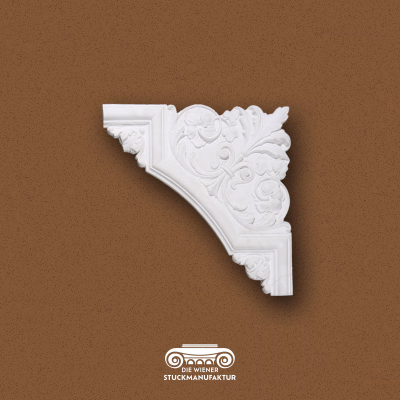Stuck Ecke 325/325mm passend zu L0038-B aus Gips. Zu diesem Eckelement haben wir auch die passende Leiste und andere Ecken zur Gestaltung von Deckenspiegeln und Wandfeldern in unserem Sortiment.