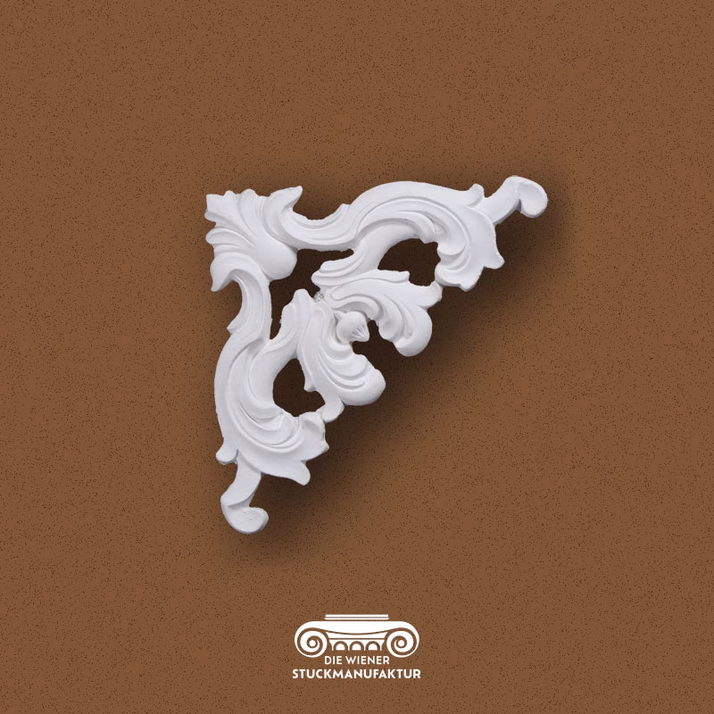 Stuck Freie Dekorecke 220/220mm aus Gips. Dieses Stuck Eckelement lässt sich hervorragend mit anderen Stuckelementen aus unserem Sortiment kombinieren.