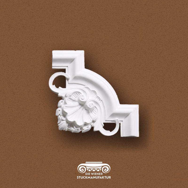 Stuck Ecke 205/205mm zu L0050-B aus Gips. Zu diesem Eckelement haben wir auch die passende Leiste und andere Ecken zur Gestaltung von Deckenspiegeln und Wandfeldern in unserem Sortiment.
