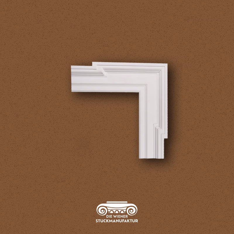Stuck Ecke 490/490mm zu L0133 aus Gips. Zu diesem Eckelement haben wir auch die passende Leiste in unserem Sortiment.