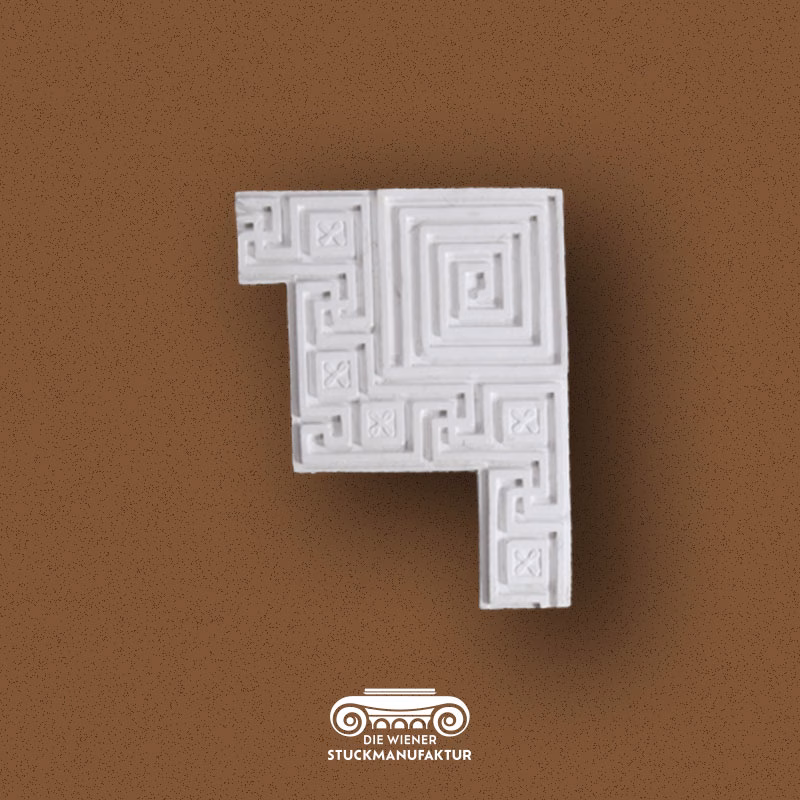 Stuck Ecke 230/180mm zu L0701 aus Gips. Zu diesem Eckelement haben wir auch die passende Leiste zur Gestaltung von Deckenspiegeln und Wandfeldern in unserem Sortiment.