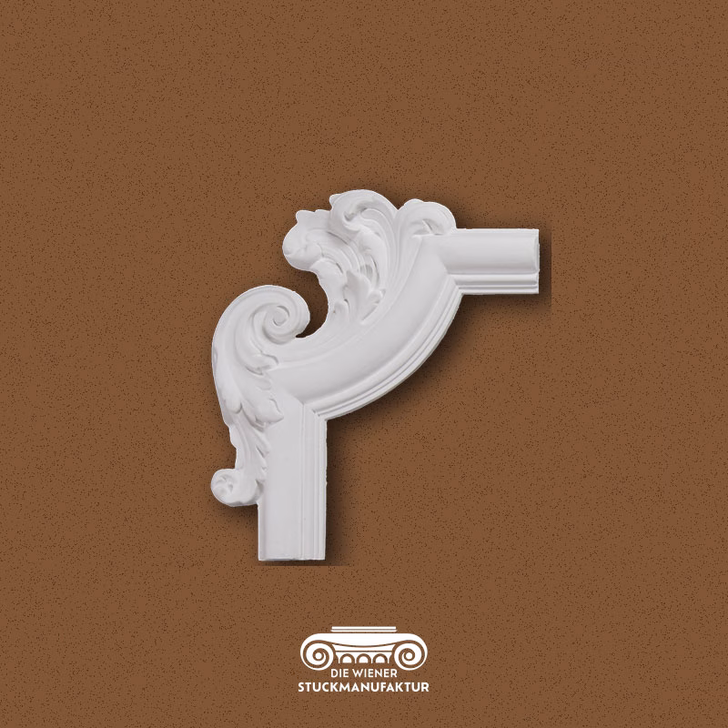 Stuck Ecke links 322/284mm zu L3057 aus Gips. Zu diesem Eckelement haben wir auch die passende Leiste, eine rechte Ecke und verschiedene Mittelstücke zur Gestaltung von Deckenspiegeln und Wandfeldern in unserem Sortiment.