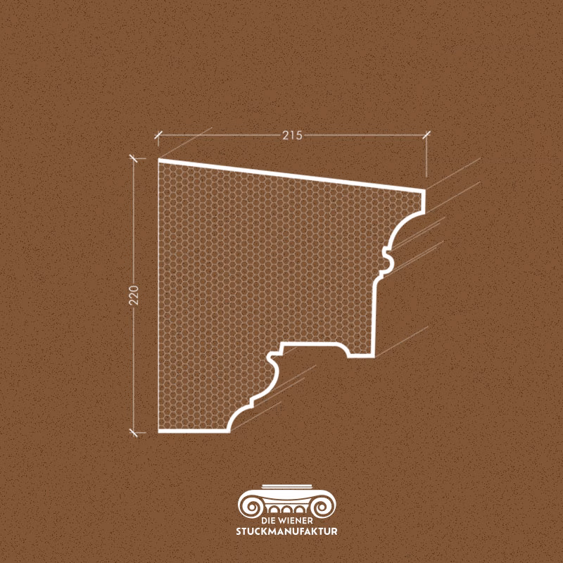 Außenstuck Hauptgesimse 220/215mm abfallend aus beschichtetem EPS.