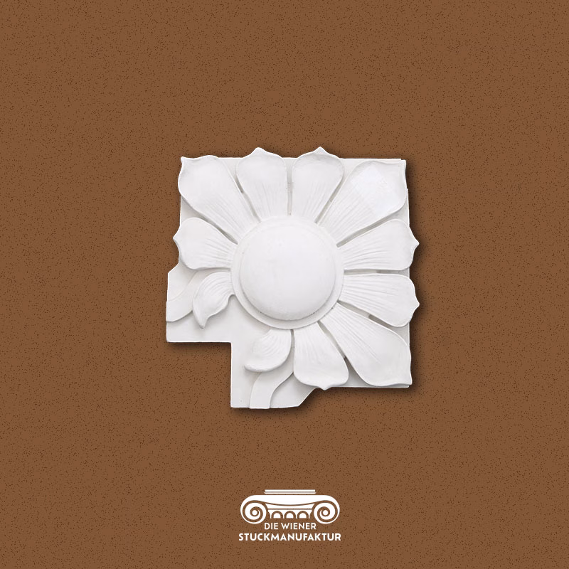Aussenstuck Ecke Jugendstil flach 325/335mm passend zu Fassadenprofil F0600 aus Beton.