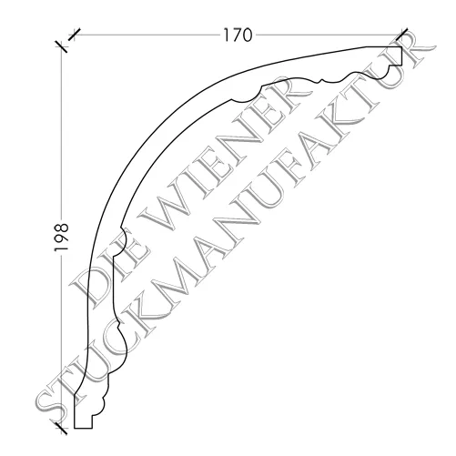 Stuck Gesimse 198/170mm glatt aus Gips. Zu diesem glatten Gesimse haben wir auch ein passendes dekoratives Mittelstück, sowie Eckelemente, Leisten und eine Rosette in unserem Sortiment.