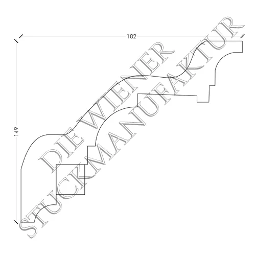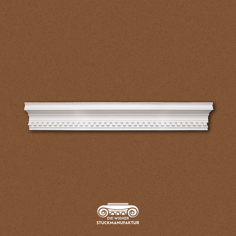 Stuck Gesimse 149/182mm Zahnschnitt aus Gips. Dieses Produkt lässt sich hervorragend mit anderen Stuck Elementen aus unserem Sortiment kombinieren.