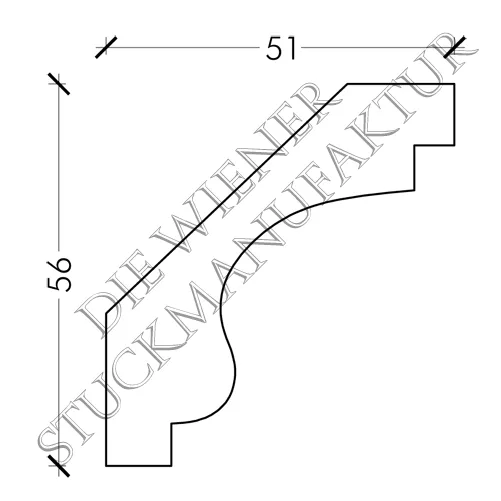 Stuck Gesimse 56/51mm glatt aus Gips. Dieses Produkt lässt sich hervorragend mit anderen Stuck Elementen aus unserem Sortiment kombinieren.