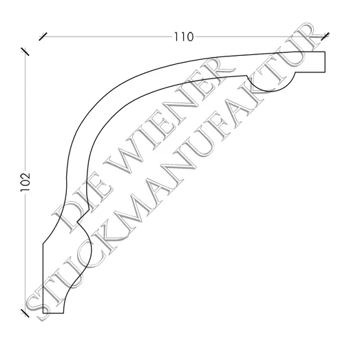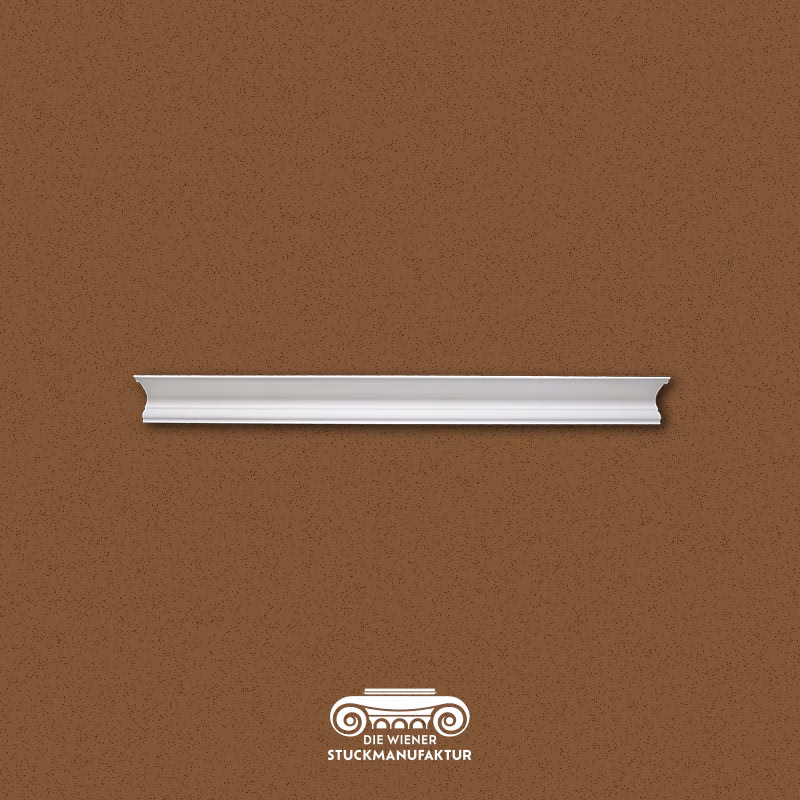 Stuck Gesimse 102/110mm glatt aus Gips. Dieses Produkt lässt sich hervorragend mit anderen Stuck Elementen aus unserem Sortiment kombinieren.