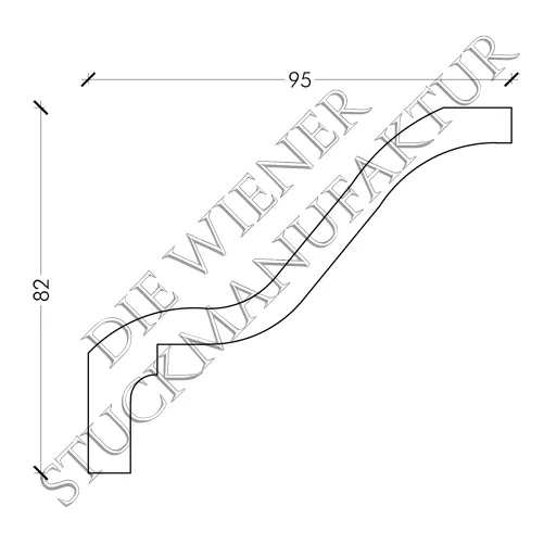 Stuck Gesimse 82/95 mm glatt aus Gips. Dieses Produkt lässt sich hervorragend mit anderen Stuck Elementen aus unserem Sortiment kombinieren.