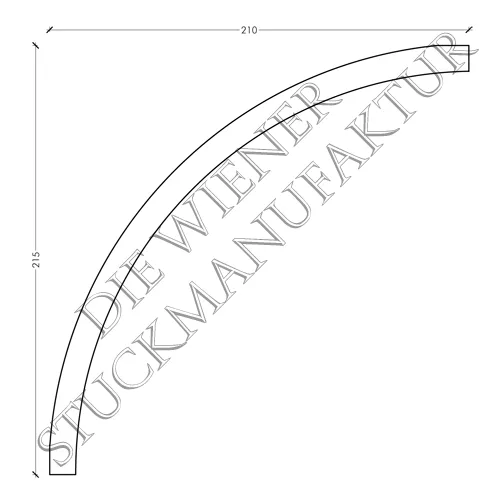 Stuck Gesimse 215/210mm glatt aus Gips. Dieses Produkt ist in verschiedenen Größen erhältlich und lässt sich hervorragend mit anderen Stuck Elementen aus unserem Sortiment kombinieren.