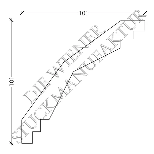 Stuck Gesimse 101/101mm gestuft aus Gips, dieses Stuck Element ist auch in einer kleineren Ausführung mit der Artikelnummer G4003 bei uns erhältlich.