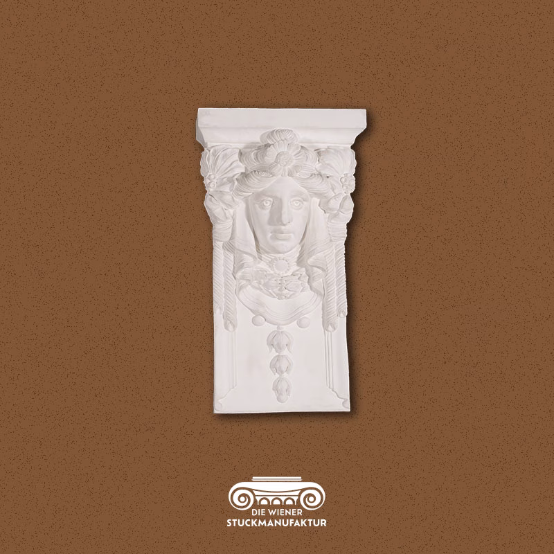 Stuck Konsole Jugendstil Frauenkopf 525/295/120mm aus Gips. Konsolen dienen zur optischen Unterstützung von Unterzügen, Wandregalen, Waschtischen etc und verleihen Ihrem Heim das gewisse Etwas.