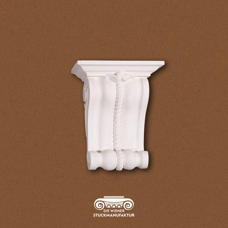 Stuck Konsole profiliert Schnur 260/215/100mm aus Gips. Konsolen dienen zur optischen Unterstützung von Unterzügen, Wandregalen, Waschtischen etc und verleihen Ihrem Heim das gewisse Etwas.