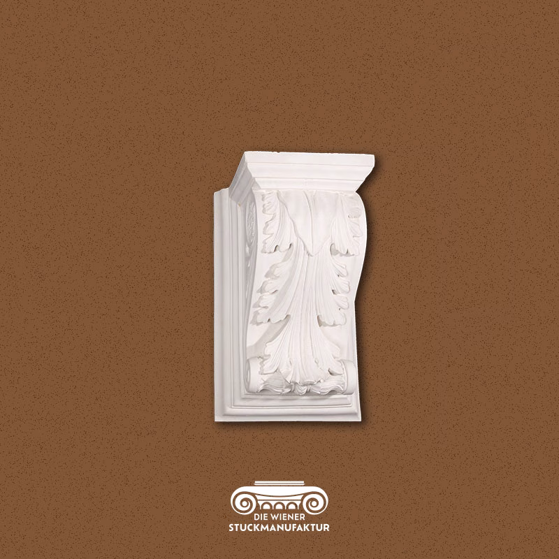 Stuck Konsole Akanthus 230/255/430mm aus Gips. Konsolen dienen zur optischen Unterstützung von Unterzügen, Wandregalen, Waschtischen etc und verleihen Ihrem Heim das gewisse Etwas.
