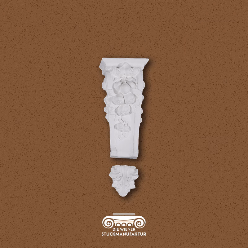 Stuck Konsole Obst 355/132/81mm aus Gips, dieses Produkt besteht aus zwei Teilen. Konsolen dienen zur optischen Unterstützung von Unterzügen, Wandregalen, Waschtischen etc und verleihen Ihrem Heim das gewisse Etwas.