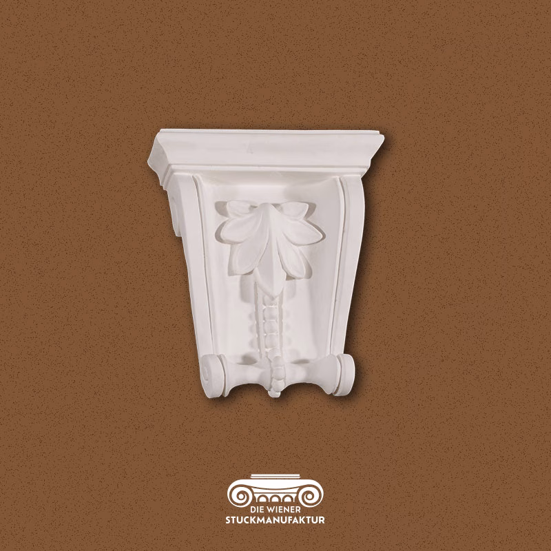 Stuck Konsole Blatt und Perlen 355/310/105mm aus Gips. Konsolen dienen zur optischen Unterstützung von Unterzügen, Wandregalen, Waschtischen etc und verleihen Ihrem Heim das gewisse Etwas.