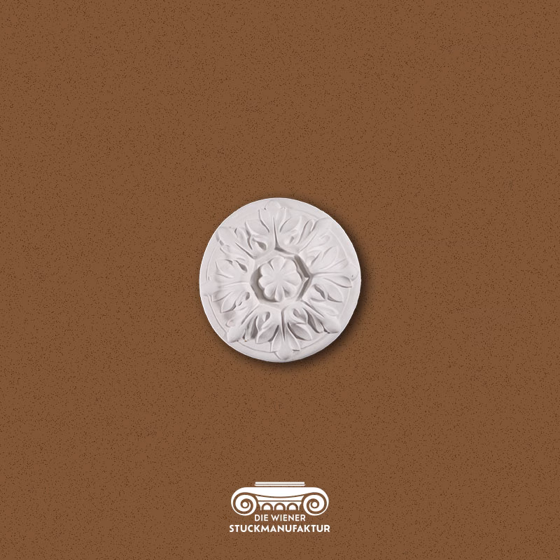 Stuck Knopf Akanthus 140mm aus Gips. Stuck Knöpfe sind vielseitig einsetzbar. Sie können ergänzend bei der Gestaltung von Wandfeldern, als zentrales Element einer Szene bis hin zum einfachen Verdecken von unschönen Stellen an Wand/Decke wie z.B. Kabelauslässe, kleine Fehler etc. dienen. Hierbei sind der Fantasie keine Grenzen gesetzt.
