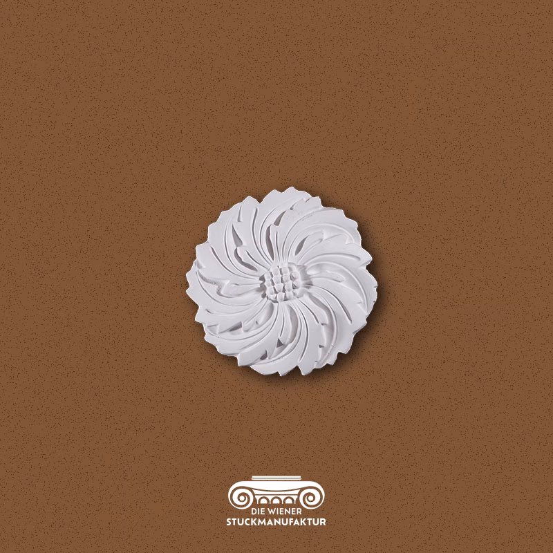 Stuck Knopf Blume 120mm aus Gips. Stuck Knöpfe sind vielseitig einsetzbar. Sie können ergänzend bei der Gestaltung von Wandfeldern, als zentrales Element einer Szene bis hin zum einfachen Verdecken von unschönen Stellen an Wand/Decke wie z.B. Kabelauslässe, kleine Fehler etc. dienen. Hierbei sind der Fantasie keine Grenzen gesetzt.