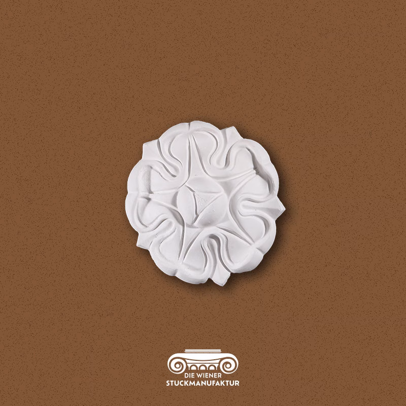 Stuck Knopf Blume 130mm aus Gips. Stuck Knöpfe sind vielseitig einsetzbar. Sie können ergänzend bei der Gestaltung von Wandfeldern, als zentrales Element einer Szene bis hin zum einfachen Verdecken von unschönen Stellen an Wand/Decke wie z.B. Kabelauslässe, kleine Fehler etc. dienen. Hierbei sind der Fantasie keine Grenzen gesetzt.