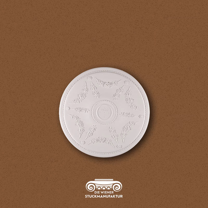 Eine Rosette stellt die Krönung jeder Stuckdecke dar, sie bildet mit oder ohne Luster das Zentrum eines Raumes.