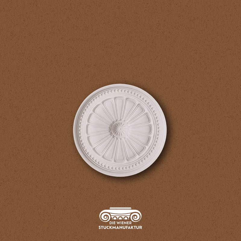 Eine Rosette stellt die Krönung jeder Stuckdecke dar, sie bildet mit oder ohne Luster das Zentrum eines Raumes.