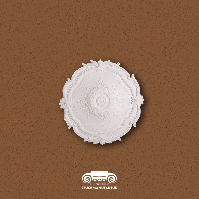 Eine Rosette stellt die Krönung jeder Stuckdecke dar, sie bildet mit oder ohne Luster das Zentrum eines Raumes.