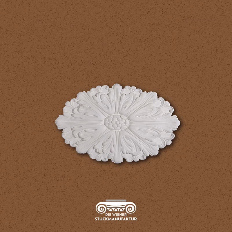 Eine Rosette stellt die Krönung jeder Stuckdecke dar, sie bildet mit oder ohne Luster das Zentrum eines Raumes.