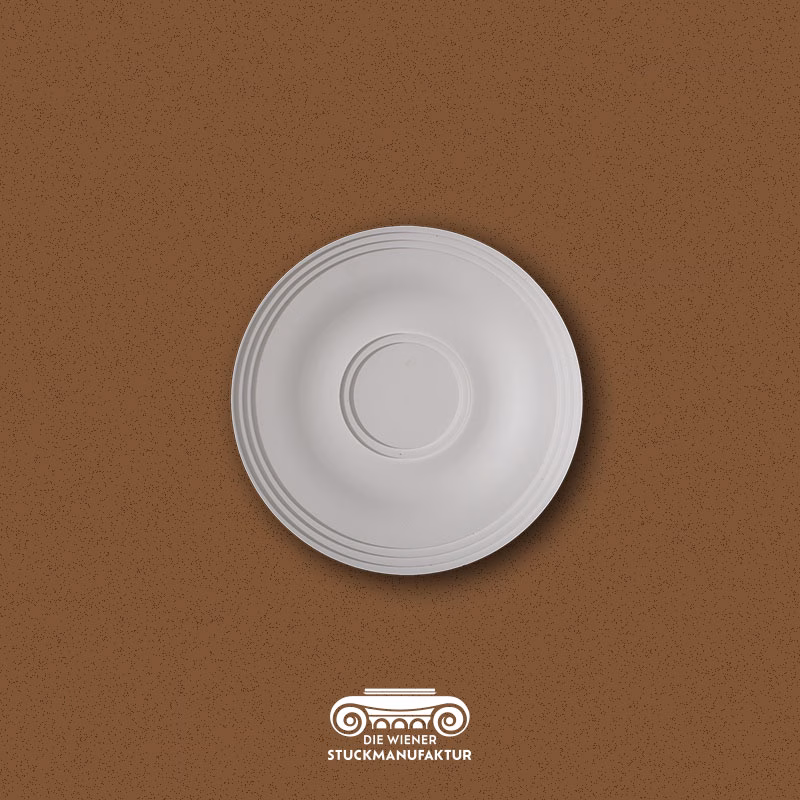 Eine Rosette stellt die Krönung jeder Stuckdecke dar, sie bildet mit oder ohne Luster das Zentrum eines Raumes.