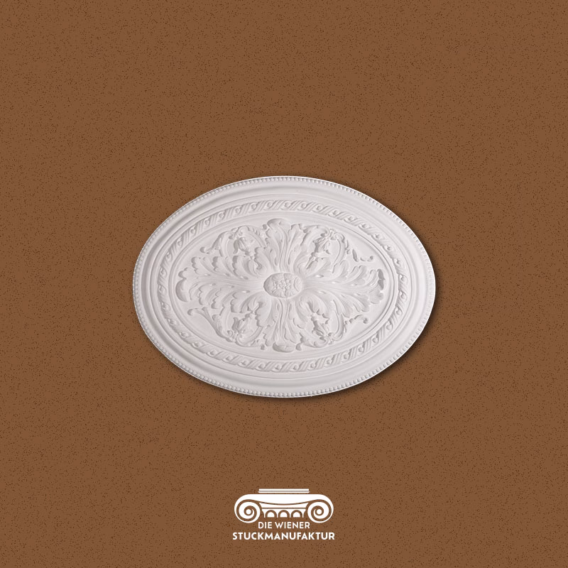 Stuck Rosette 435/585mm Akanthus und Schnur aus Gips.