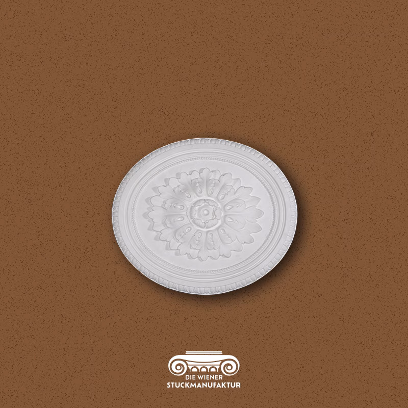 Stuck Rosette 415/480mm Akanthus und Ochsenauge aus Gips.