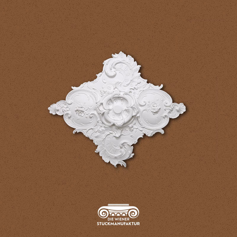Stuck Rosette 800/950mm Rokoko aus Gips, dazu passend haben wir Leisten, Ecken, Mittelstücke und Gesimse zur Gestaltung von Deckenspiegeln und Wandfeldern in unserem Sortiment.