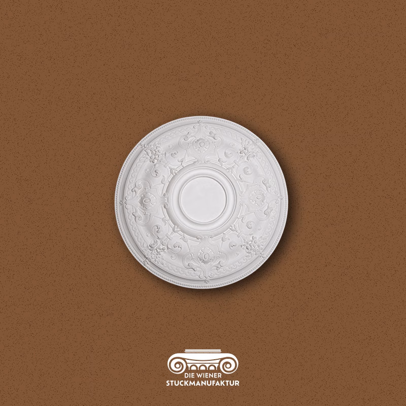 Eine Rosette stellt die Krönung jeder Stuckdecke dar, sie bildet mit oder ohne Luster das Zentrum eines Raumes.