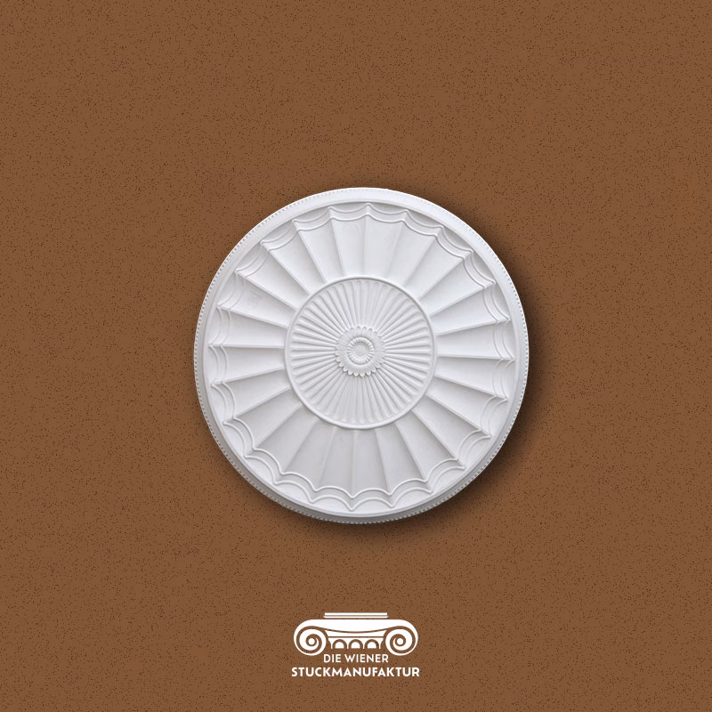 Eine Rosette stellt die Krönung jeder Stuckdecke dar, sie bildet mit oder ohne Luster das Zentrum eines Raumes.