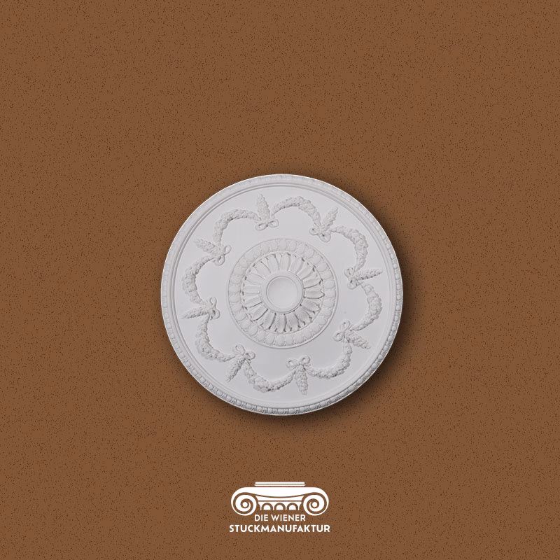 Eine Rosette stellt die Krönung jeder Stuckdecke dar, sie bildet mit oder ohne Luster das Zentrum eines Raumes.