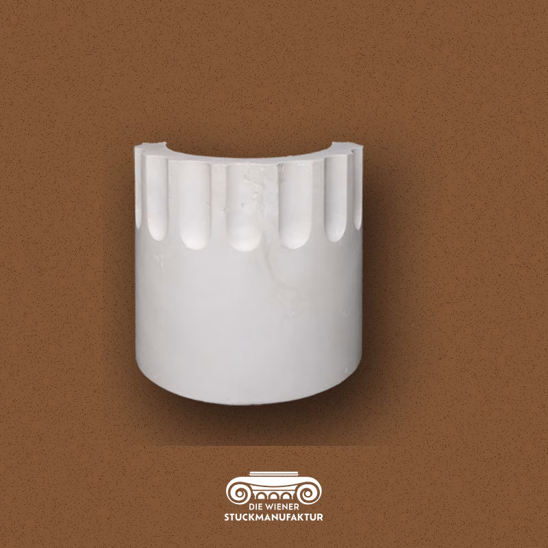 Stuck Säulenendstück halb 200/220mm aus Gips.