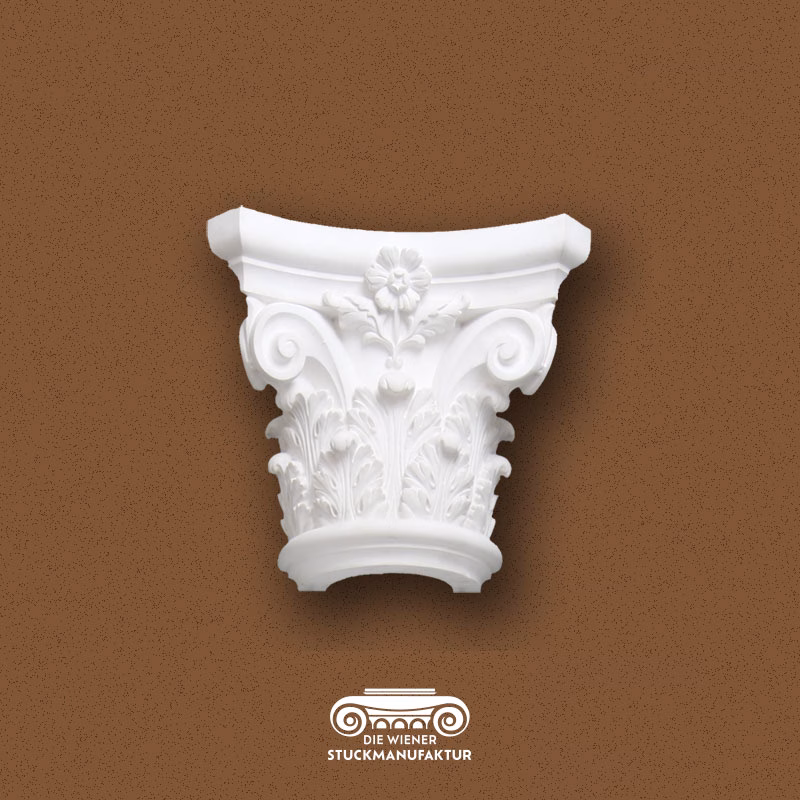 Stuck Korinthisches Kapitell halb 300/360/175mm aus Gips.