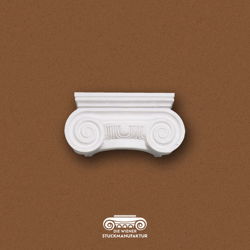 Stuck Ionisches Kapitell halb 210/470/190mm aus Gips.