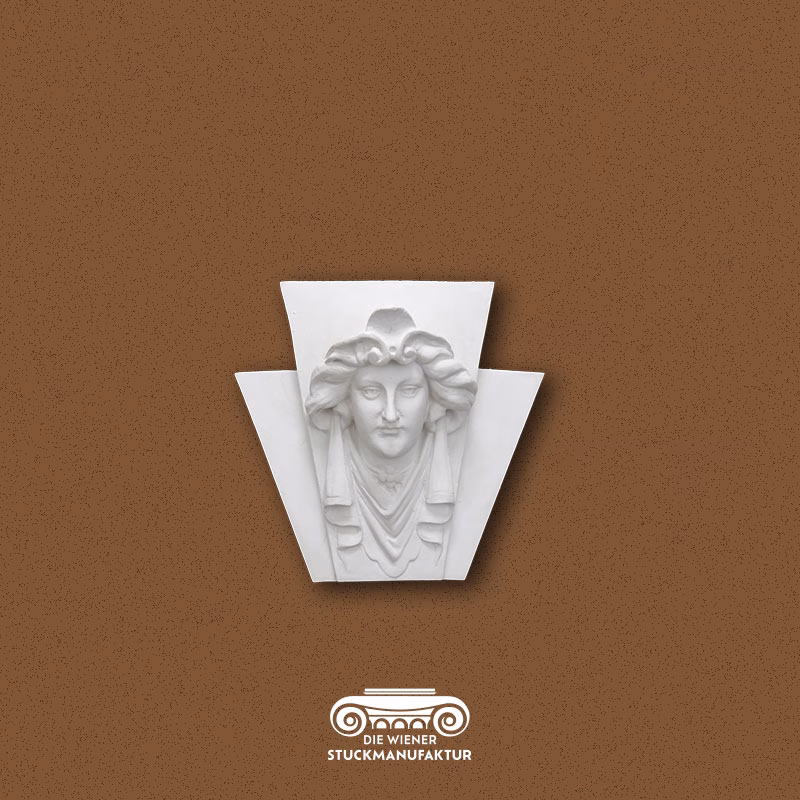 Stuck Schlussstein Frauenkopf 370/380/120mm aus Gips.